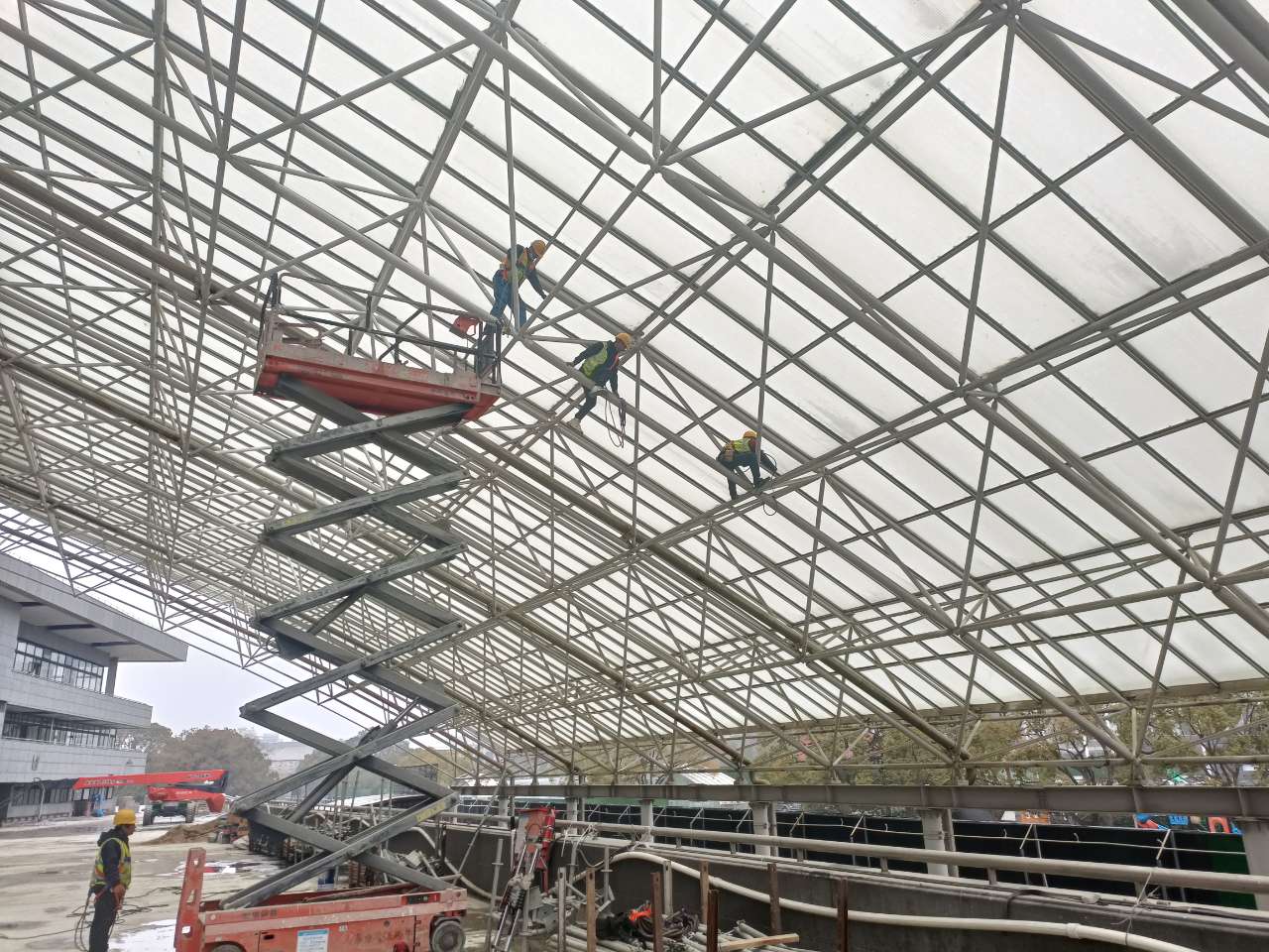 把网架按生产区域分成小块,每晚只加固一个区域,用防火布、安全网把施工区和生产区彻底隔开,既防止焊渣、工具掉落砸坏设备,又不影响其他区域正常生产。我们做过五金厂、汽配厂的网架加固,全程没耽误一条生产线运转。