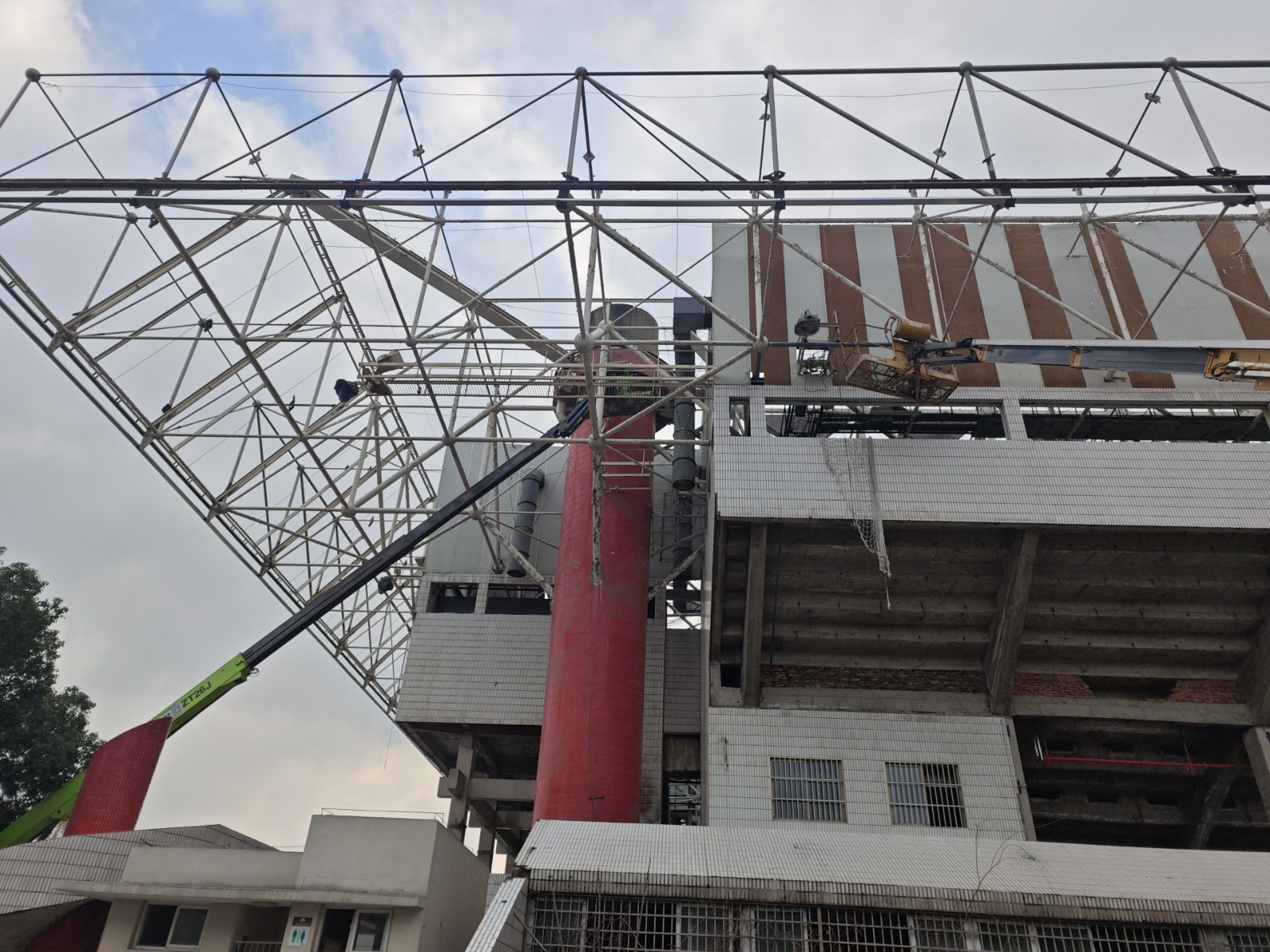 把厂房网架按生产区域分成小块,每次只加固一个片区,用防火布、安全网把施工区和生产区彻底隔开,既防焊渣掉落砸坏机器,又避免施工噪音干扰操作。哪怕是流水线厂房,也能做到“施工的片区歇着,生产的片区干着”,产能一点没损耗。